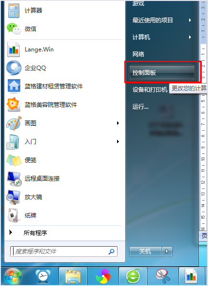1.在開始里找到控制面板
