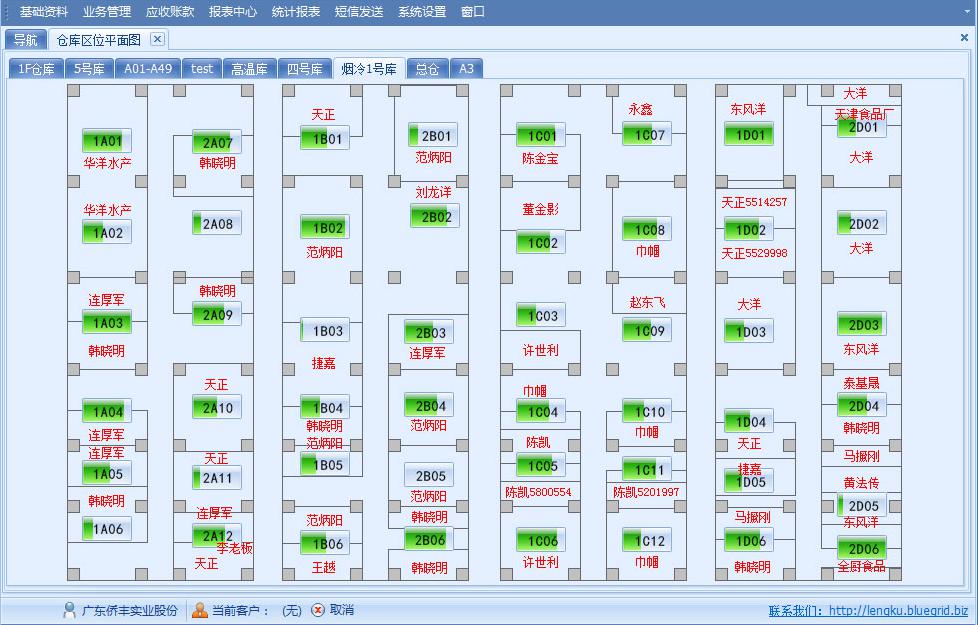 傲藍冷凍庫管理軟件倉庫區位平面圖,實現倉庫區位圖形化管理,用戶可以自定義倉庫區位,直觀地查詢各倉位商品存放情況,倉庫庫存清晰直觀地展現,每個倉位的使用情況一目了然。
