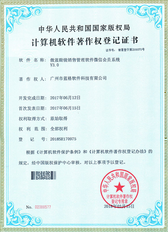 • 美容院管理軟件微信會(huì)員系統(tǒng)著作權(quán)登記證書